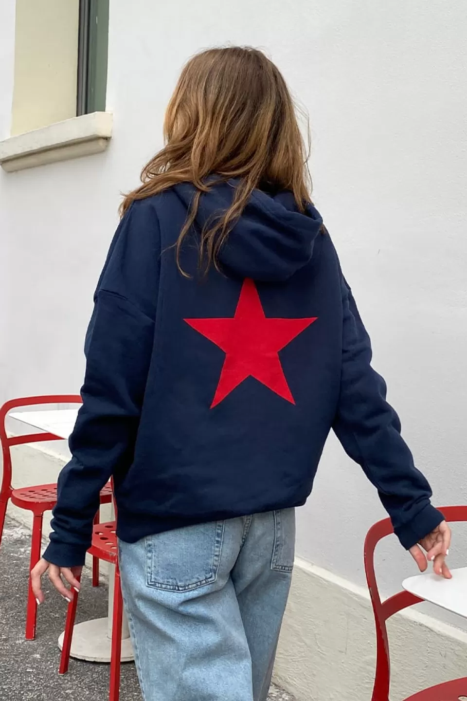 Felpa con stampa Stella, con cappuccio, tasche frontali, maniche lunghe, lunghezza lunga, vestibilità comoda. Spedizione Express e Reso Facile