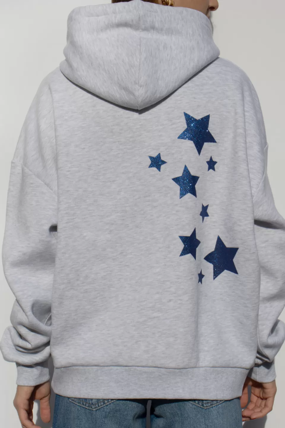 Felpa con stampa stelle glitter, con cappuccio, tasche frontali, maniche lunghe, lunghezza lunga, vestibilità comoda. Spedizione Express e Reso Facile